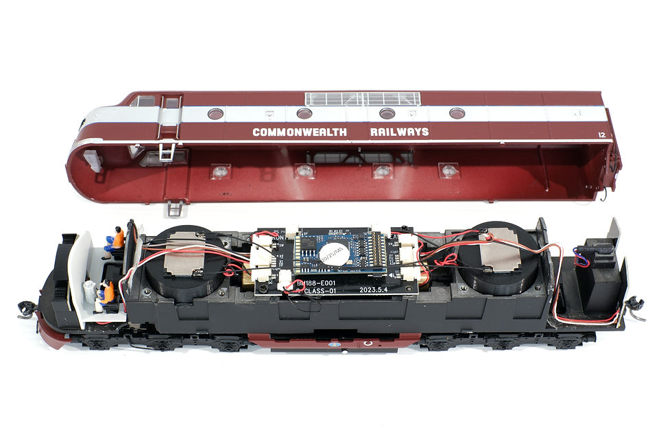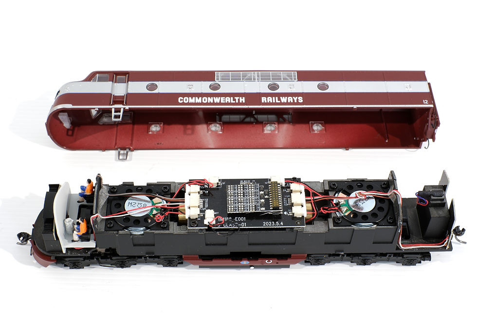 An ESU 58420 decoder and speakers are fitted to 4201 in the example below. The 8 pin models were such that the headlight and numberboards were wired together.